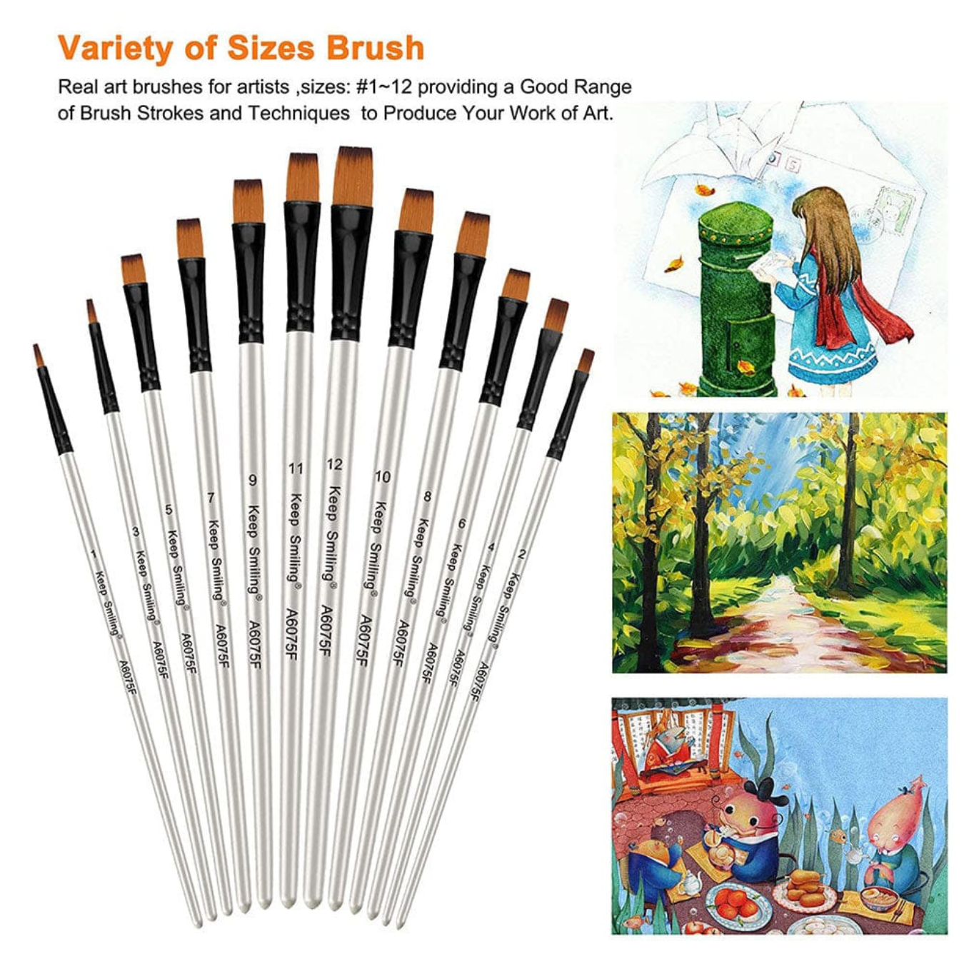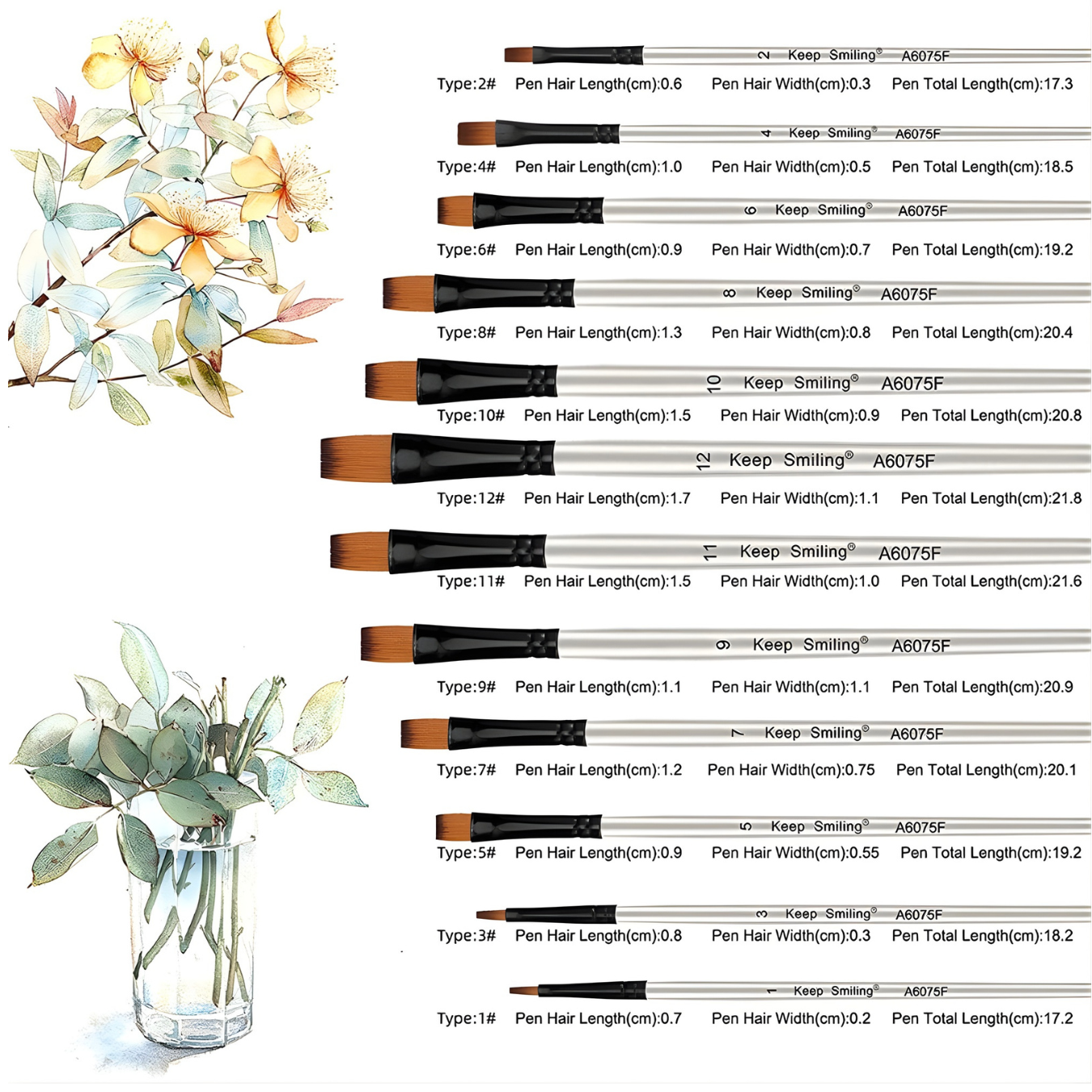 - 12 فرشاة مسطحة بأحجام مختلفة