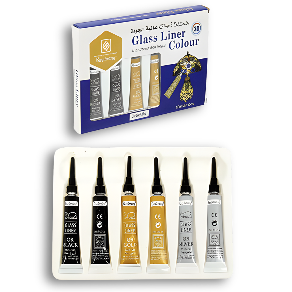 تتضمن المجموعة ألوان أساسية مستخدمة بكثرة في هذا النوع من الفن مثل الأسود، الذهبي، والفضي، وهي مثالية لإضافة تباين ولمسة جمالية واضحة على التصاميم الزجاجية.