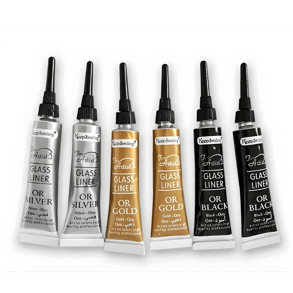 تتميز هذه المحددات بتركيبة أكثر كثافة من ألوان الزجاج العادية، مما يسمح بإنشاء خطوط بارزة قليلاً تساعد في تثبيت اللون داخل المساحات المحددة. كما أن رأس الأنبوب الدقيق يمنحك قدرة أفضل على التحكم أثناء الرسم، سواء في التفاصيل الصغيرة أو الخطوط الخارجية.