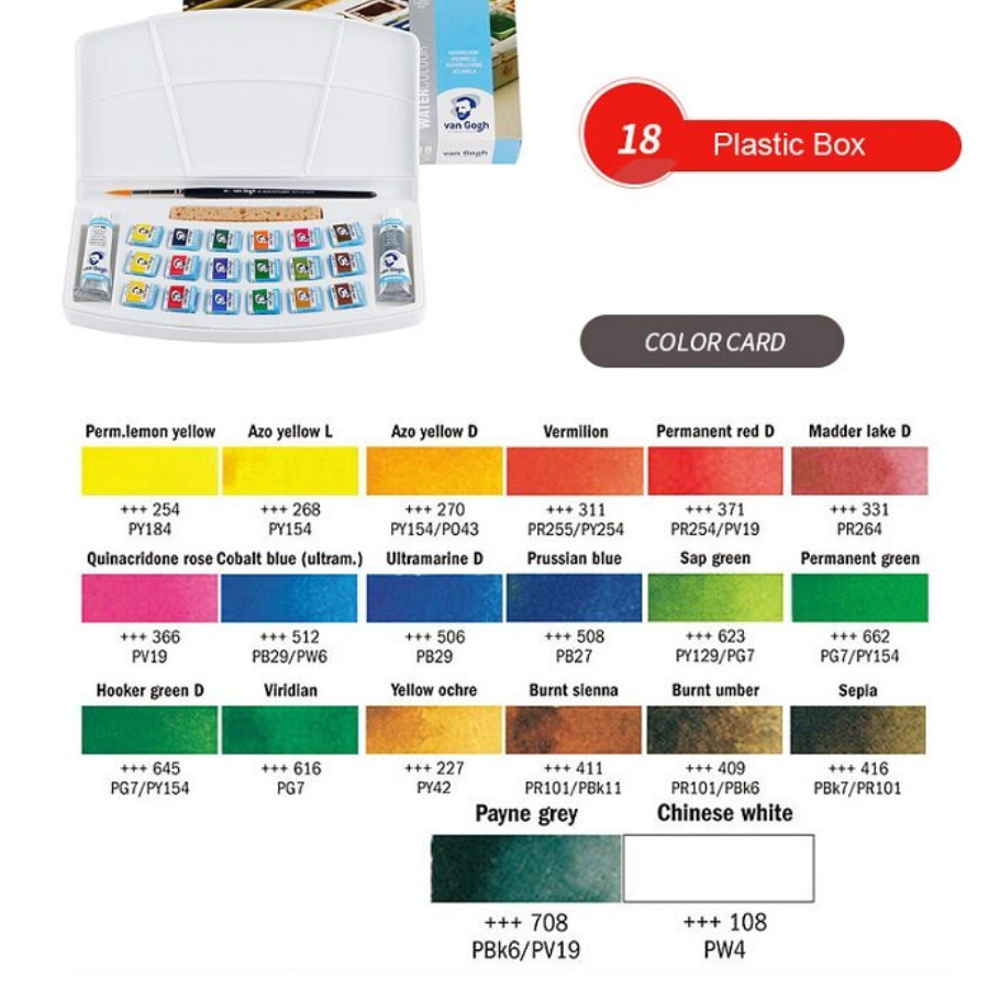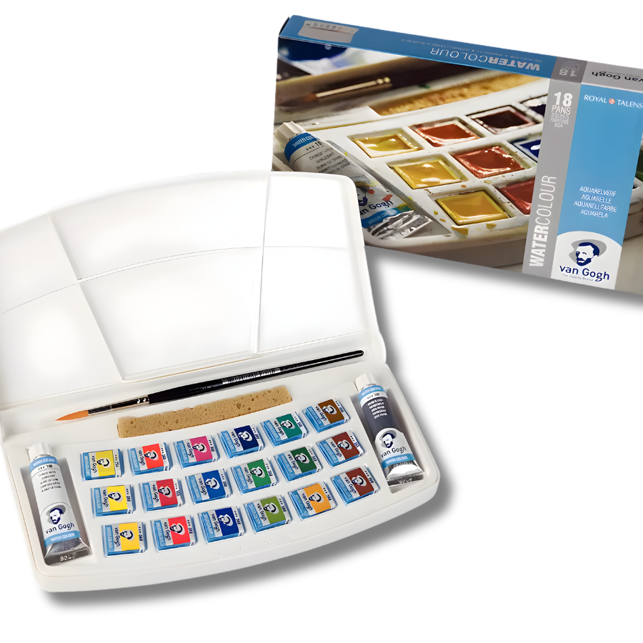 مجموعة Van Gogh Watercolour من شركة Royal Talens الهولندية هي مجموعة ألوان مائية عالية الجودة تجمع بين الأداء الاحترافي وسهولة الاستخدام، مما يجعلها خياراً مثالياً للطلاب والفنانين على حد سواء