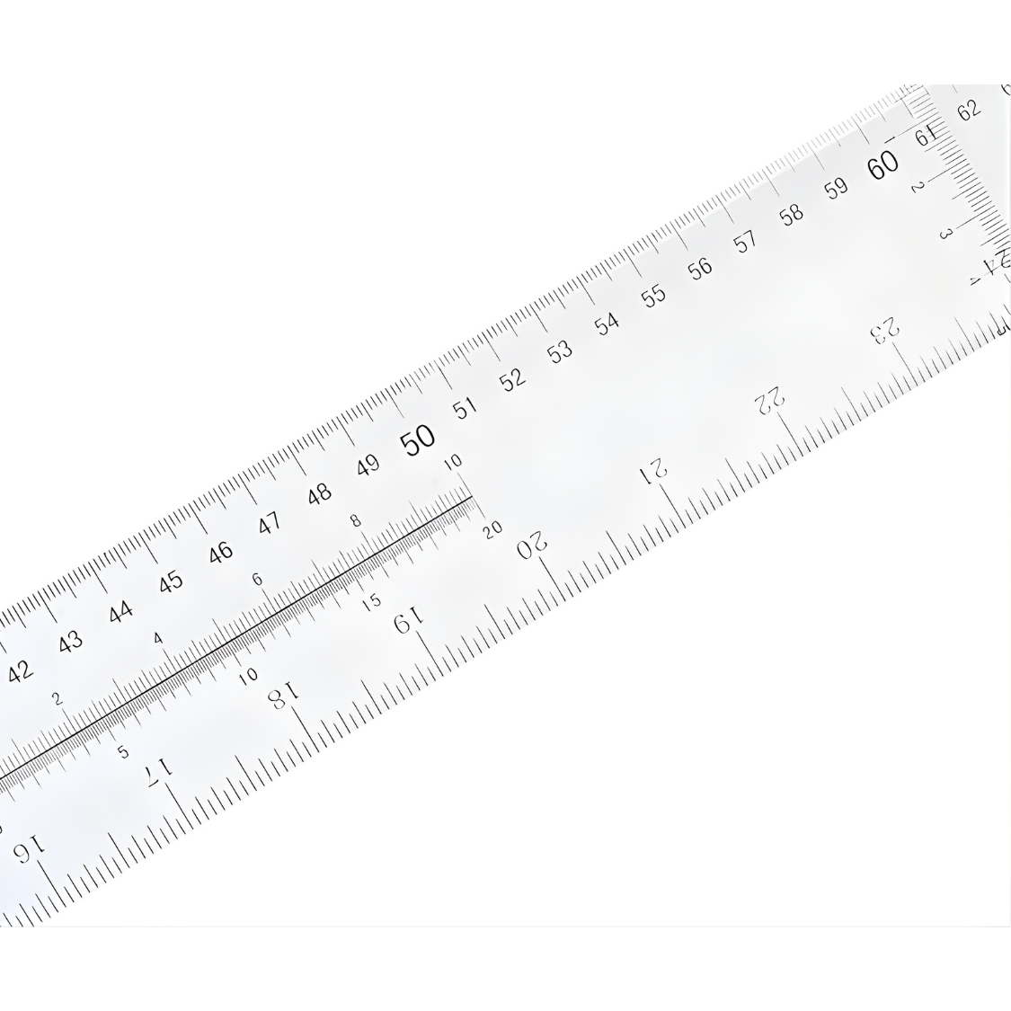 جسم الأكريليك المقوى: المسطرة مصنوعة من مادة الأكريليك الشفافة (Clear Acrylic) التي تتميز بـ: