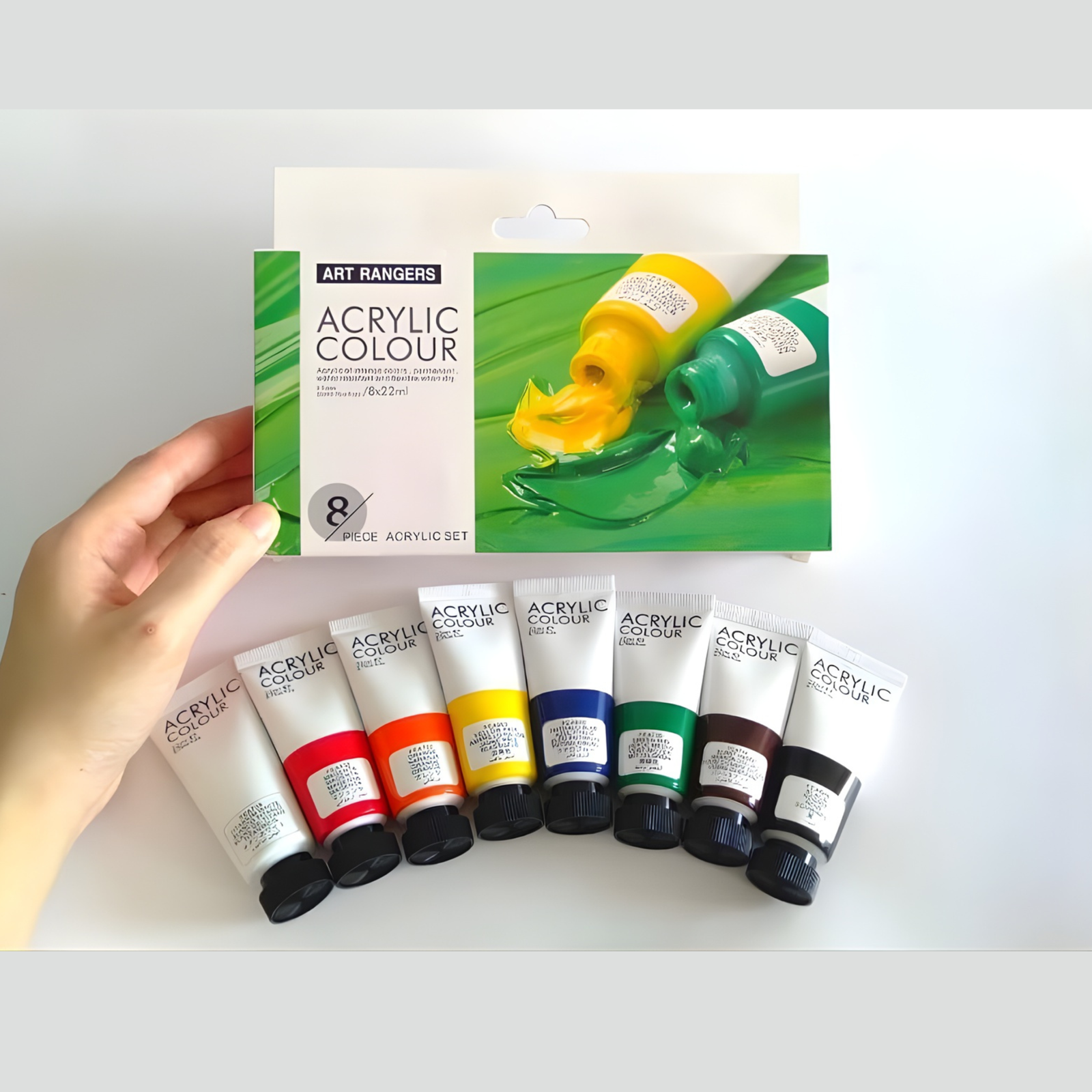 مجموعة ألوان أكريليك أساسية من Art Rangers تضم 8 ألوان رئيسية توفر قاعدة ممتازة لمزج الألوان وإنشاء أعمال فنية متنوعة. هذه المجموعة مناسبة للمبتدئين، طلاب الفنون والفنانين الذين يبحثون عن مجموعة ألوان عملية للرسم والتجارب الفنية.