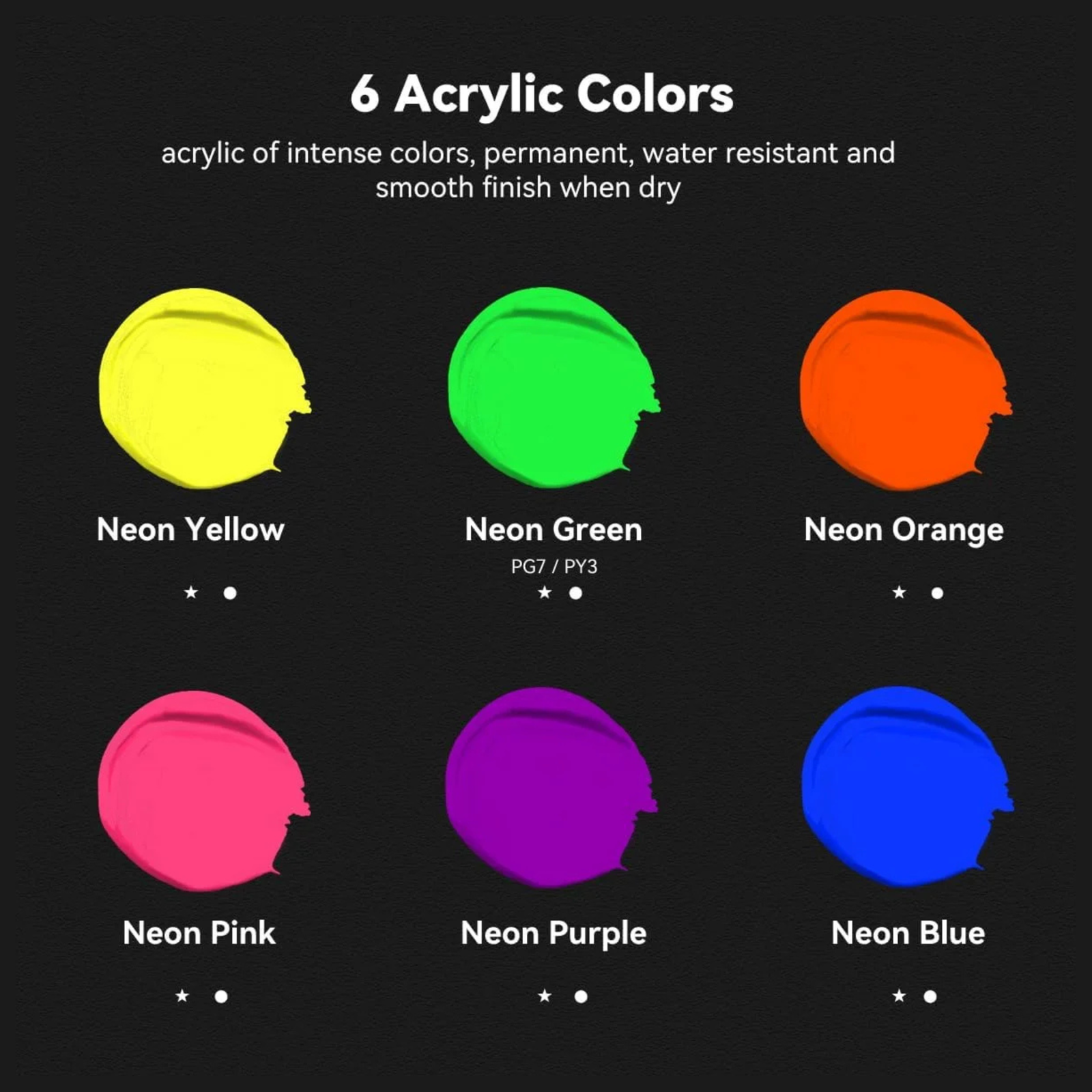 طقم ألوان أكريليك نيون – 6 × 75 مل