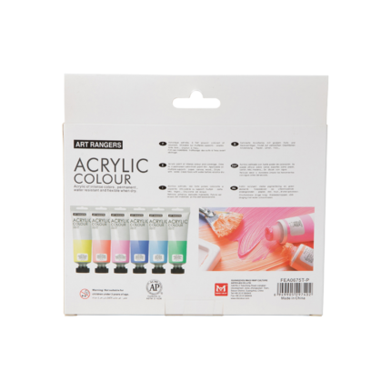 6 أنابيب لون أكريليك – 12 مل لكل أنبوب.