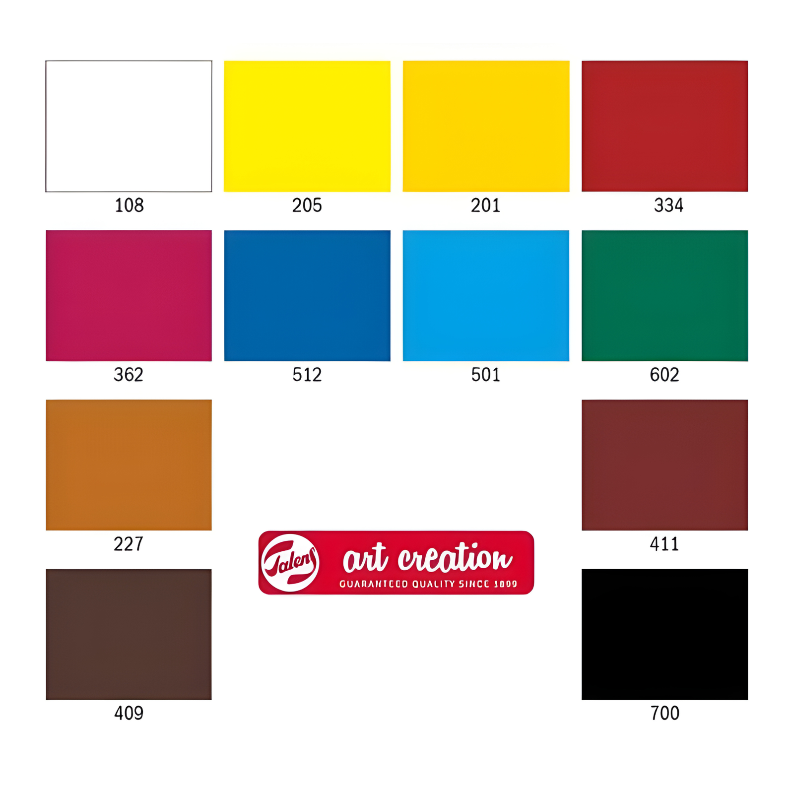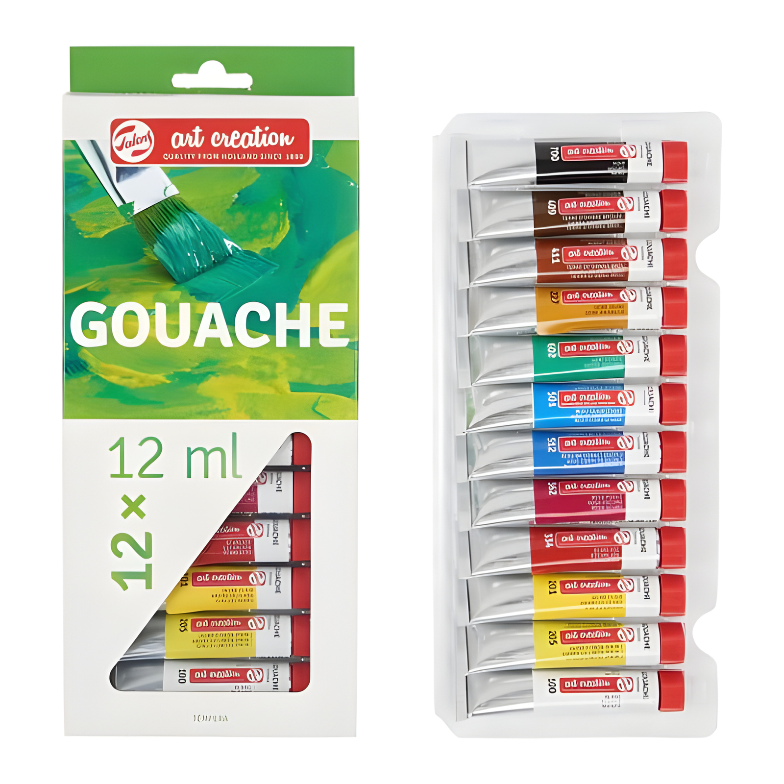 مجموعة ألوان جواش (Gouache) من Talens Art Creation تضم 12 لوناً أساسياً توفر لوحة ألوان ممتازة لإنشاء لوحات فنية متنوعة. هذه المجموعة مناسبة للمبتدئين والفنانين الذين يرغبون في العمل بالألوان الجواش ذات التغطية القوية.