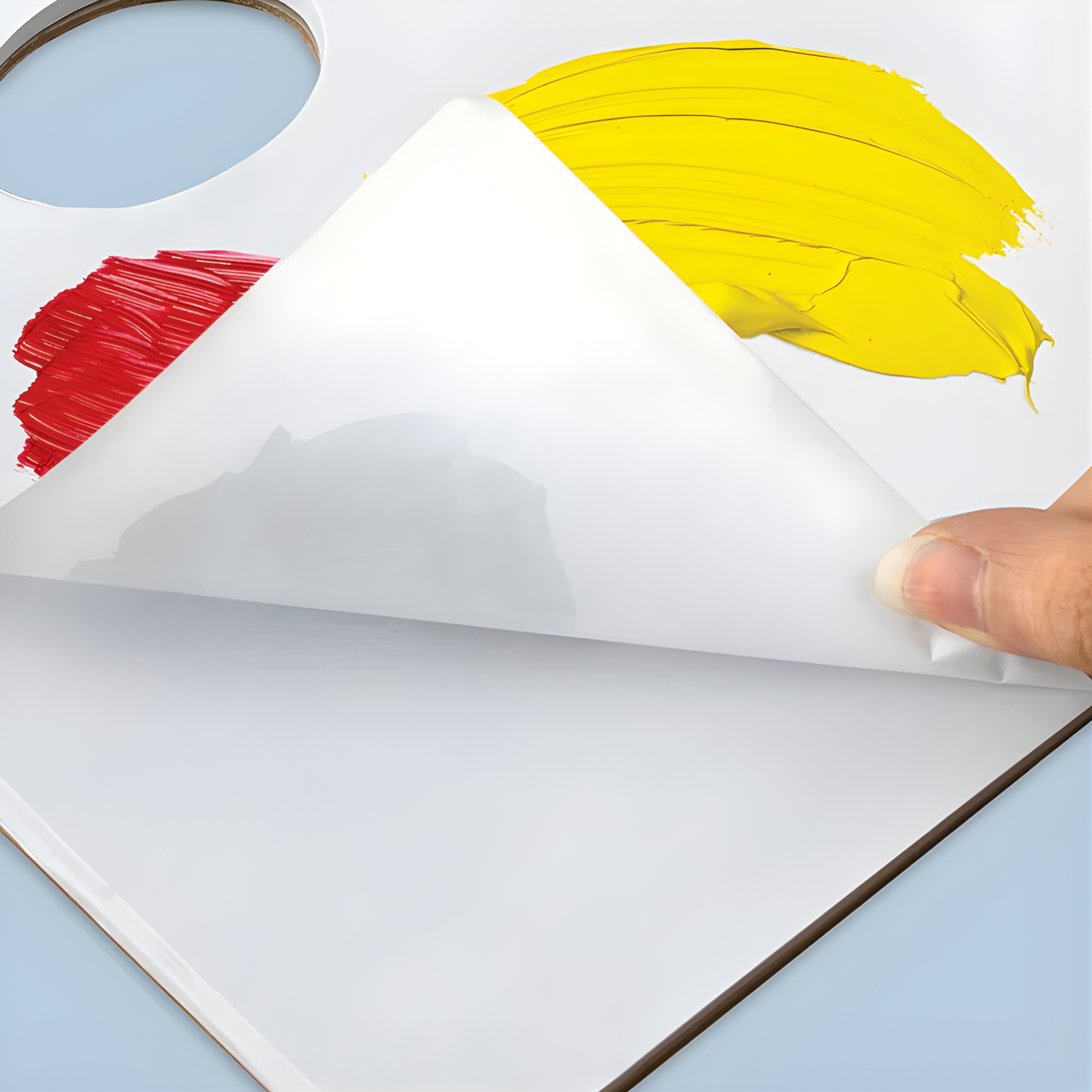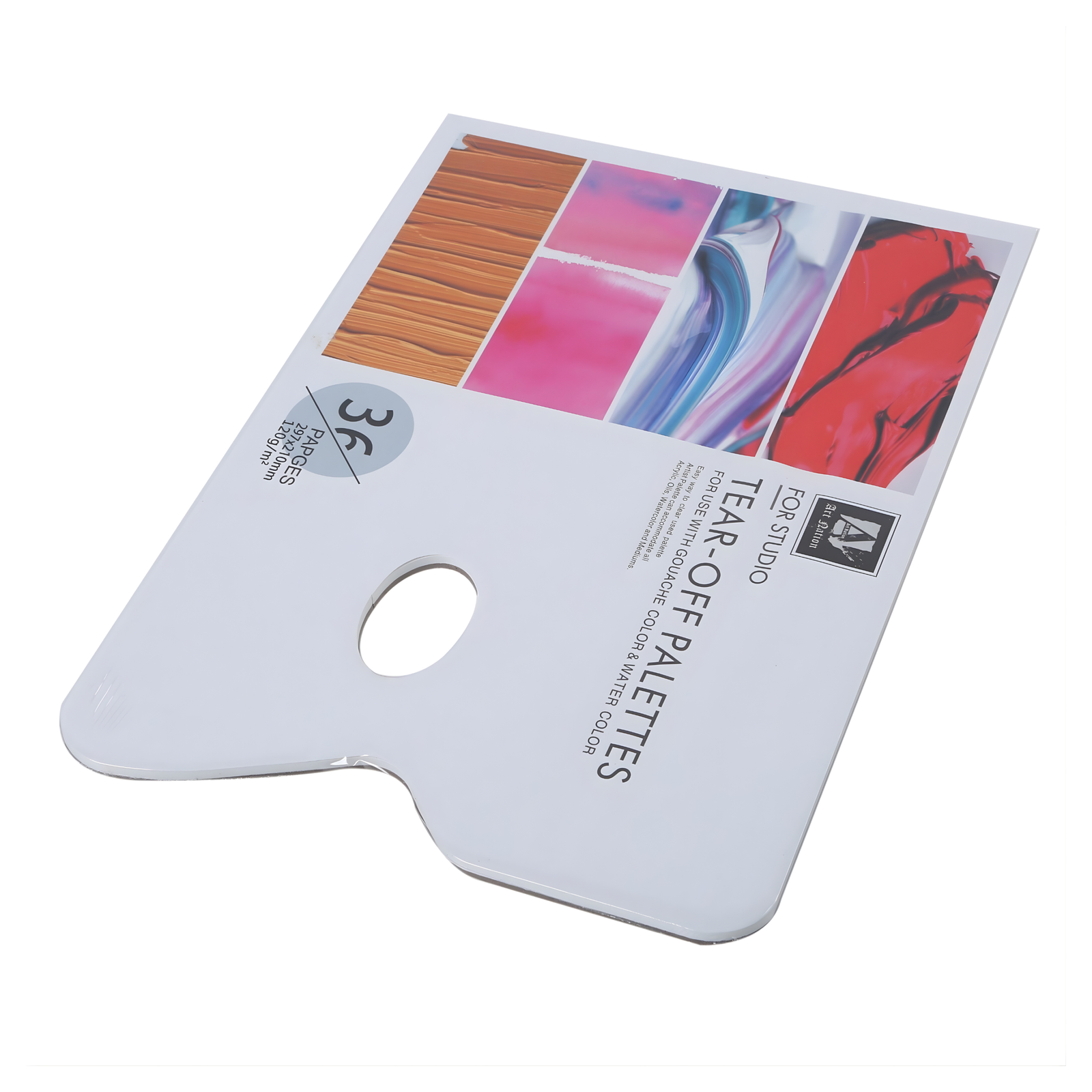باليت خلط ألوان عملي مصنوع من ورق خاص مطلي غير ماص يسمح بخلط الألوان بسهولة دون امتصاص الطلاء. كل ورقة تعمل كلوحة خلط مستقلة ويمكن تمزيقها بعد الاستخدام، مما يلغي الحاجة لتنظيف الباليت التقليدي.