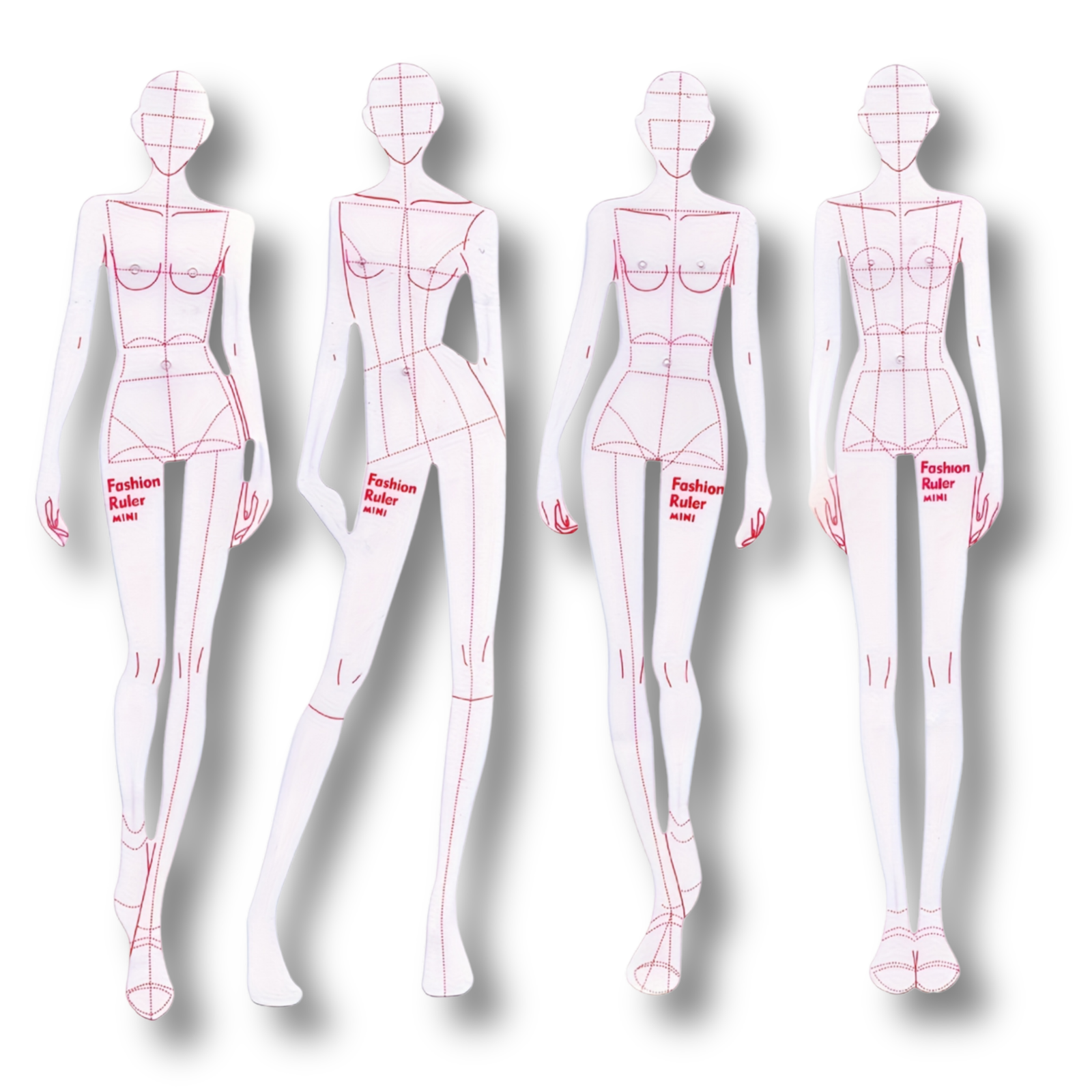مجموعة مساطر تصميم الأزياء النسائية مصممة لمساعدة مصممي الأزياء وطلاب التصميم على رسم سكيتشات الملابس بسرعة ودقة. تتضمن المجموعة 4 أوضاع مختلفة لجسم المرأة تساعد على إنشاء تصاميم متنوعة بسهولة مع الحفاظ على النسب الصحيحة للجسم.